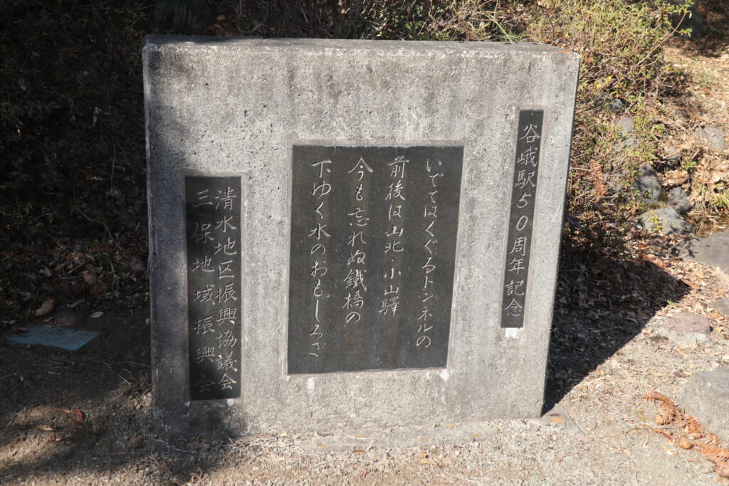 ホーム上には鉄道唱歌の13番の歌詞が彫られた石碑があった。