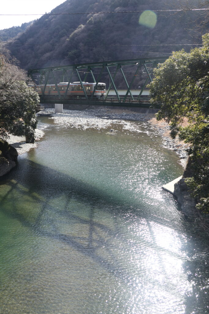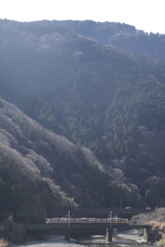 30分程?歩いていくと酒匂川橋梁にたどり着いた。逆光ではあるが、山越え区間であることがわかるような景色だったので1枚撮影した。
