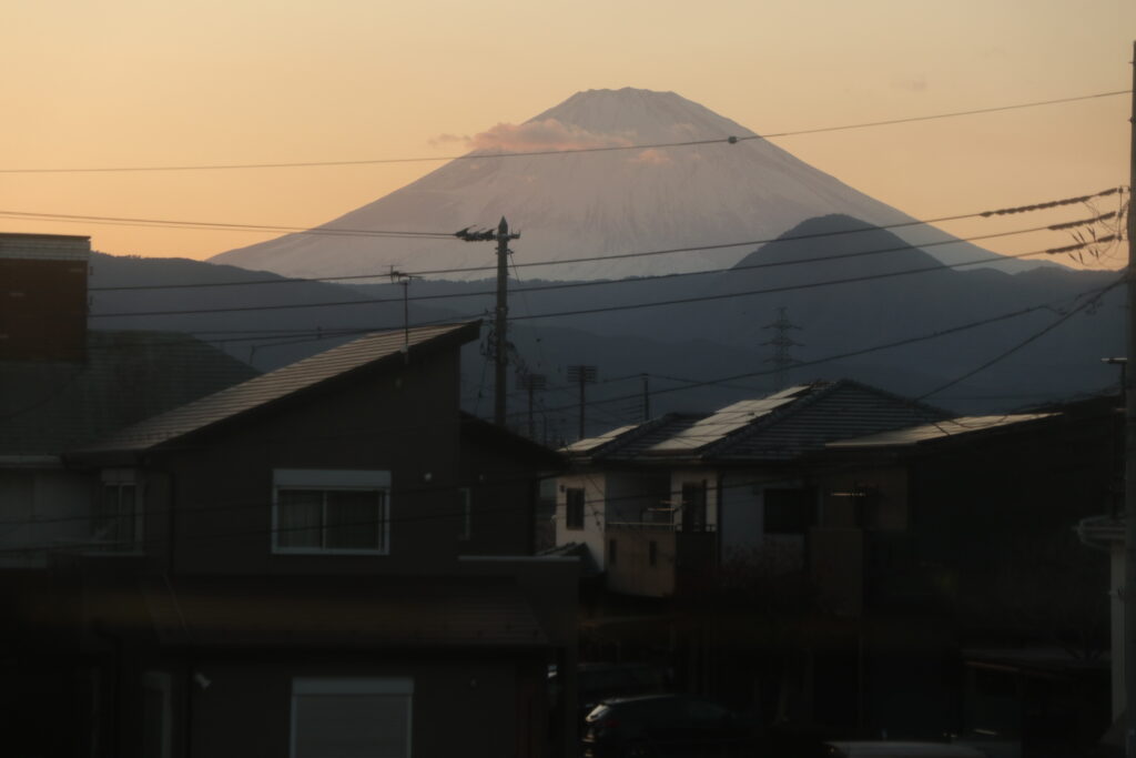 この日は少し雲が多く、夕焼けの富士山が見られないと思っていたが、綺麗な富士山を見ることができた。
